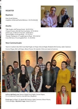 Chris Cameron (Transfer), Alan McClean (Baptism).