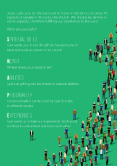 Jesus calls us to be disciples and to move in obedience to what He expects of people in his body, the church. We should be serving in some capacity, therefore fulflling our obedience to the Lord. What are your gifts? Spiritual gifts God wants you to use the gift He has given you to bless and build up others in the church Heart Where does your passion lie? Abilities Spiritual gifting can be linked to natural abilities Personality Our personalities can be used by God to relate to diferent people Experiences God wants us to take our experiences, both good and bad, to understand and serve each other
