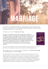 Marriage is great, but it’s not forever. It’s until death do us part. Then come eternal rewards or regrets depending on how we spent our lives. In his latest book, Francis Chan joins together with his wife Lisa to address the question many couples wonder at the altar: “How do I have a healthy marriage?” Setting aside typical topics on marriage, Francis and Lisa dive into Scripture to understand what it means to have a relationship that satisfes the deepest parts of our souls. ‘You and Me Forever: Marriage in Light of Eternity’ will MARRIAGE life, in the light of our relationship with Jesus. The way to have a great radically shift the way we see one of the most important relationships in our marriage is not by focusing just on marriage, but on Jesus. Whether you are single, dating, engaged or married, ‘You and Me Forever’ will help you discover the adventure that you were made for and learn how to thrive in it. This book is also available as a free app and within the app you can read and listen to the book. As a church, it is our desire that our married couples experience strong, supportive, vibrant This is a short and enjoyable read which will challenge us as parents and married couples. and loving marriages, which in turn are powerful examples and witnesses to the world, showing the diference Jesus makes to our lives together. Tim Keller says in his book ‘The Meaning of Marriage’: ‘Let’s Stick Together’ introduces simple, practical skills that really work within a relationship. “As a pastor I have spoken to thousands of couples, some working on marriage-seeking, some working on marriage-sustaining and some working The book looks at three areas; on marriage-saving. I’ve heard them say over and over, “Love shouldn’t be this hard; it should come naturally.” In response, I always say something Bad habits; the negative attitudes that can afect every relationship. like, “Why believe that? Would someone who wants to play professional baseball say, ‘It shouldn’t be so hard to hit a fastball?’ Would someone who Good habits; there are fve main ‘love languages’ and by learning to recognise wants to write the greatest American novel of her generation say, ‘ these, couples are better able to communicate love within their relationships. It shouldn’t be hard to create believable characters and compelling narrative?’” Keep dad involved; for many couples the natural option can be for mum to take over most or all of the parenting role and for dad to drift into the As a church, we frmly believe in the beauty of God’s gift of marriage and also of our need to background. The message here is ‘work as a team’. work hard at our marriages. One way we can do this is to learn from good resources. Three excellent books, which are both helpful and challenging are, ‘The Meaning of Marriage’, ‘You and Me Forever’ and ‘Let’s Stick Together’. As a church we ofer the ‘Let’s Stick Together’ course which is a one hour session that ofers positive and practical ideas on how to handle those inevitable diferences. Importantly, within this book, the Kellers deal with the theology of marriage. Tim turns his attention to that most complex of matters: our need for love and its expression in marriage. Nikki has completed this course with several couples in the congregation and if you are interested in this Beginning with the biblical narrative and its pictures of marriage, that span the original ideal worthwhile course, please speak to Nikki. to the broken, to the redemptive, he looks at themes of friendship and commitment; the completion of men and women in each other; singleness, sex and divorce; and ministry and We hope to run a Marriage Celebration and Enrichment event in the spring term but, in the meantime, discipleship within the context of marriage. This is a profound and engaging work that will we hope you fnd these books helpful and enjoy reading them. challenge and inspire people in all stages of life - single, newlywed and married. Stephen Orr