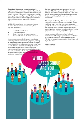 In High Kirk we call our small groups Laser Groups of all our groups – note that most of our groups are