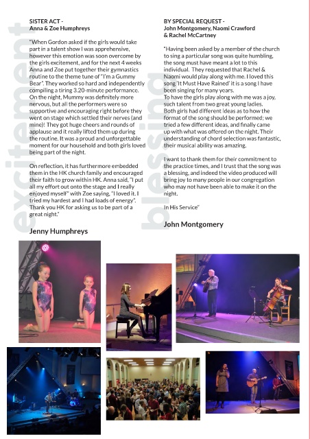 part in a talent show I was apprehensive, “Having been asked by a member of the church