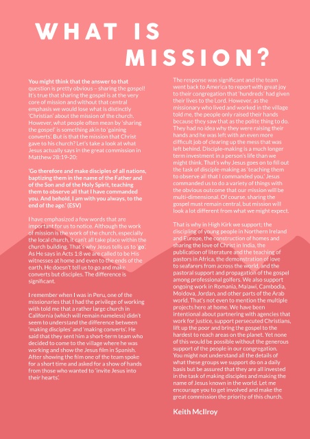 of mission is the work of the church, especially discipling of young people in Northern Ireland