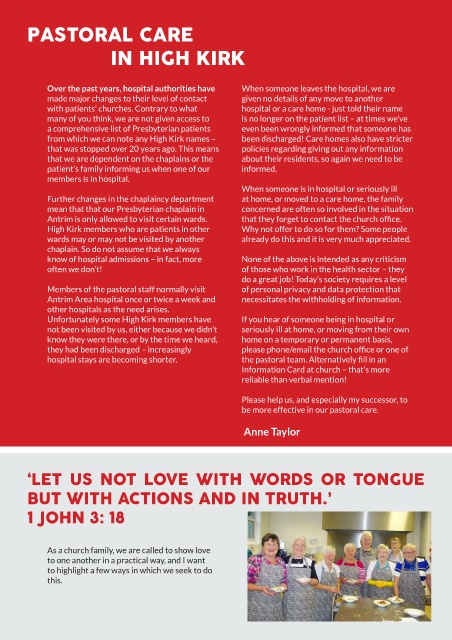 Unfortunately some High Kirk members have If you hear of someone being in hospital or