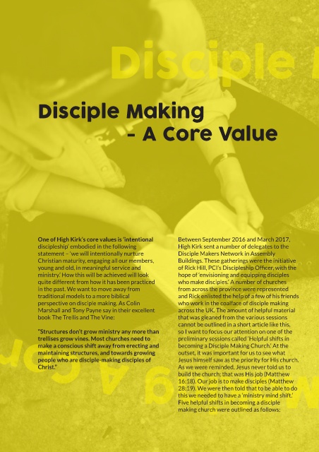 make a conscious shift away from erecting and becoming a Disciple Making Church.’ At the