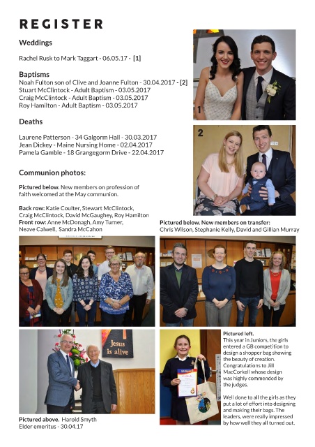 faith welcomed at the May communion.