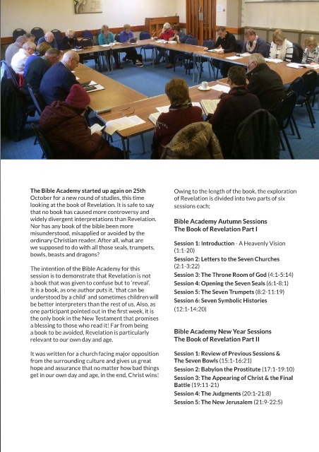 The Bible Academy started up again on 25th Owing to the length of the book, the exploration