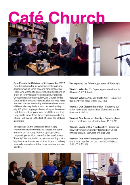 Café Church 1st October to 5th November 2017 We explored the following aspects of ‘Identity’: