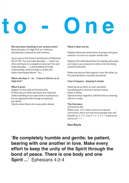 Support in the walk of Christian life. Usually good to choose a neutral venue.