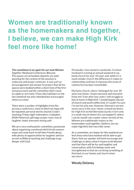 be repeated: personal stories shared; Cindy’s for High Kirk to feel like home (surely it isn’t only