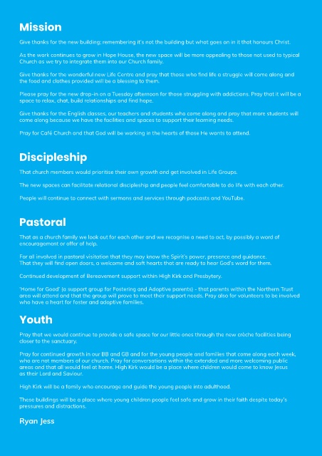 areas and that all would feel at home. High Kirk would be a place where children would come to know Jesus