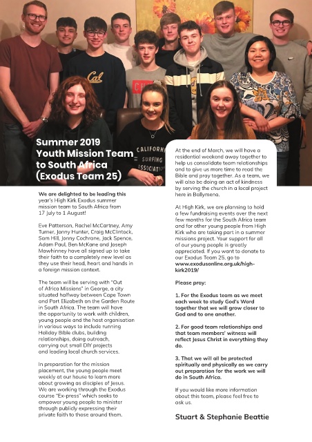 mission team to South Africa from At High Kirk, we are planning to hold