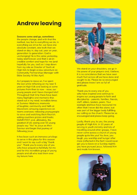 people say “Yes” to Jesus as their people of High Kirk. In 10 years of