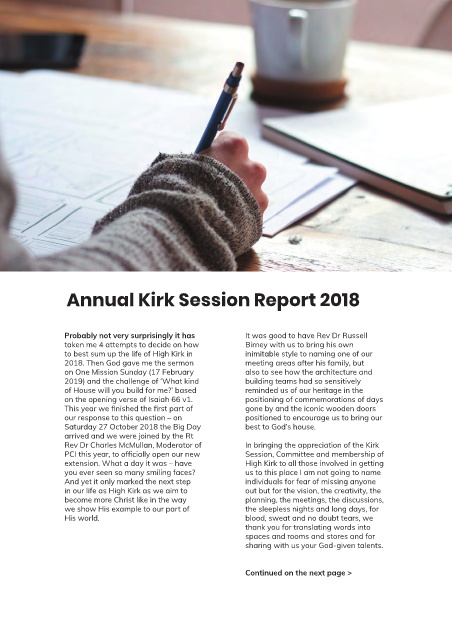 in our life as High Kirk as we aim to out but for the vision, the creativity, the