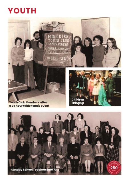 YOUTH Children Youth Club Members after lining up a 24 hour table tennis event Sunday School Teachers late 70’s