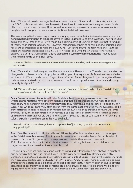 Alan: “First of all, no mission organisation has a money tree. Some had investments, but since