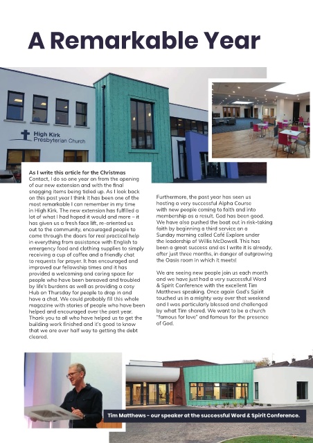 in High Kirk. The new extension has fulfilled a with new people coming to faith and into