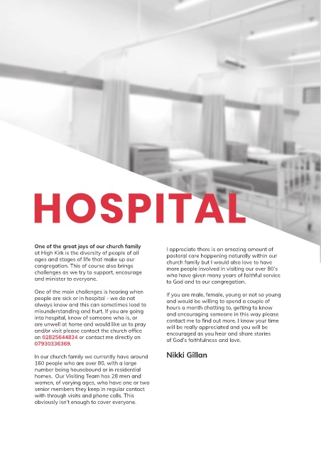 into hospital, know of someone who is, or contact me to fi nd out more. I know your time