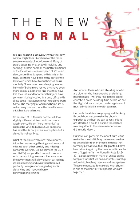So for each of us the new normal will look through how we can make the church