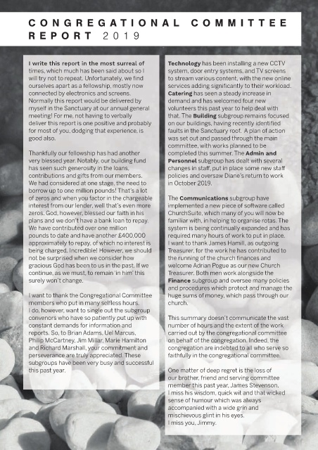 Philip McCartney, Jim Millar, Marie Hamilton on behalf of the congregation. Indeed, the