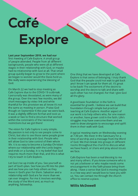Cafe Explore due to the COVID-19 outbreak. each other has not changed. For that I give God
