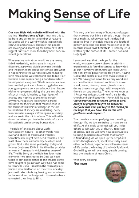 Our new High Kirk website will lead with the This very brief summary of hundreds of pages