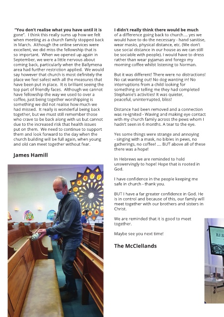 gone”. I think this really sums up how we felt of a difference going back to church.... yes we