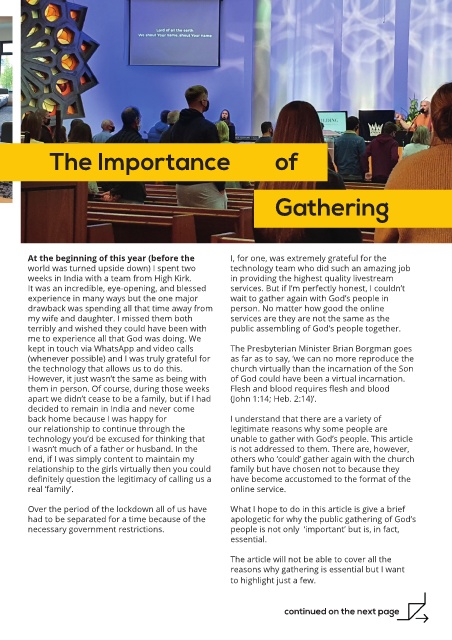 technology you’d be excused for thinking that unable to gather with God’s people. This article