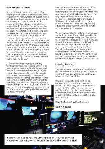 on the work we do now. have been involved in all three Sunday services.